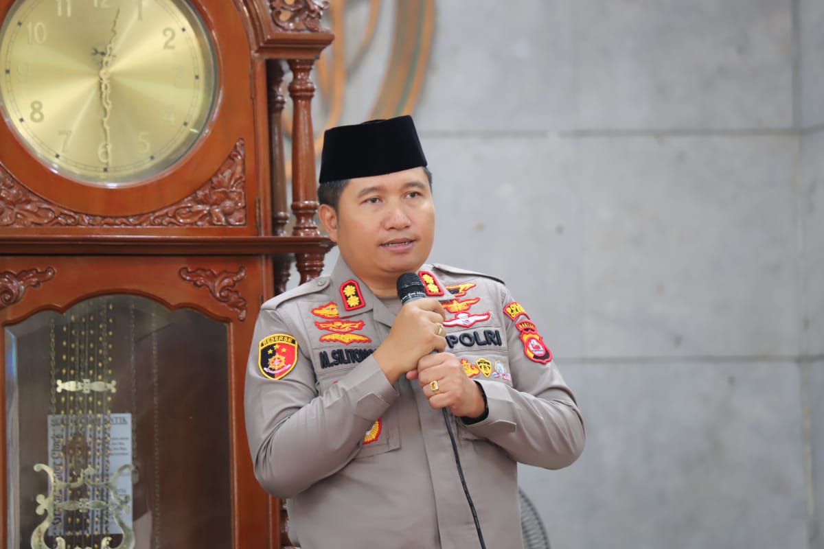Cilegon – Dalam upaya mempererat hubungan dengan masyarakat serta memperkuat sinergitas dalam menjaga keamanan dan ketertiban, Kapolres Cilegon Polda Banten, AKBP Dr. Martua Raja Taripar Laut Silitonga, S.H., S.I.K., M.Si., melaksanakan kegiatan Silaturahmi Jum’at Keliling (Jumling) di Masjid Baitul Islah, Link. Pegantungan, Kelurahan Jombang Wetan, Kecamatan Jombang, Kota Cilegon, Jumat (17/10/2025).