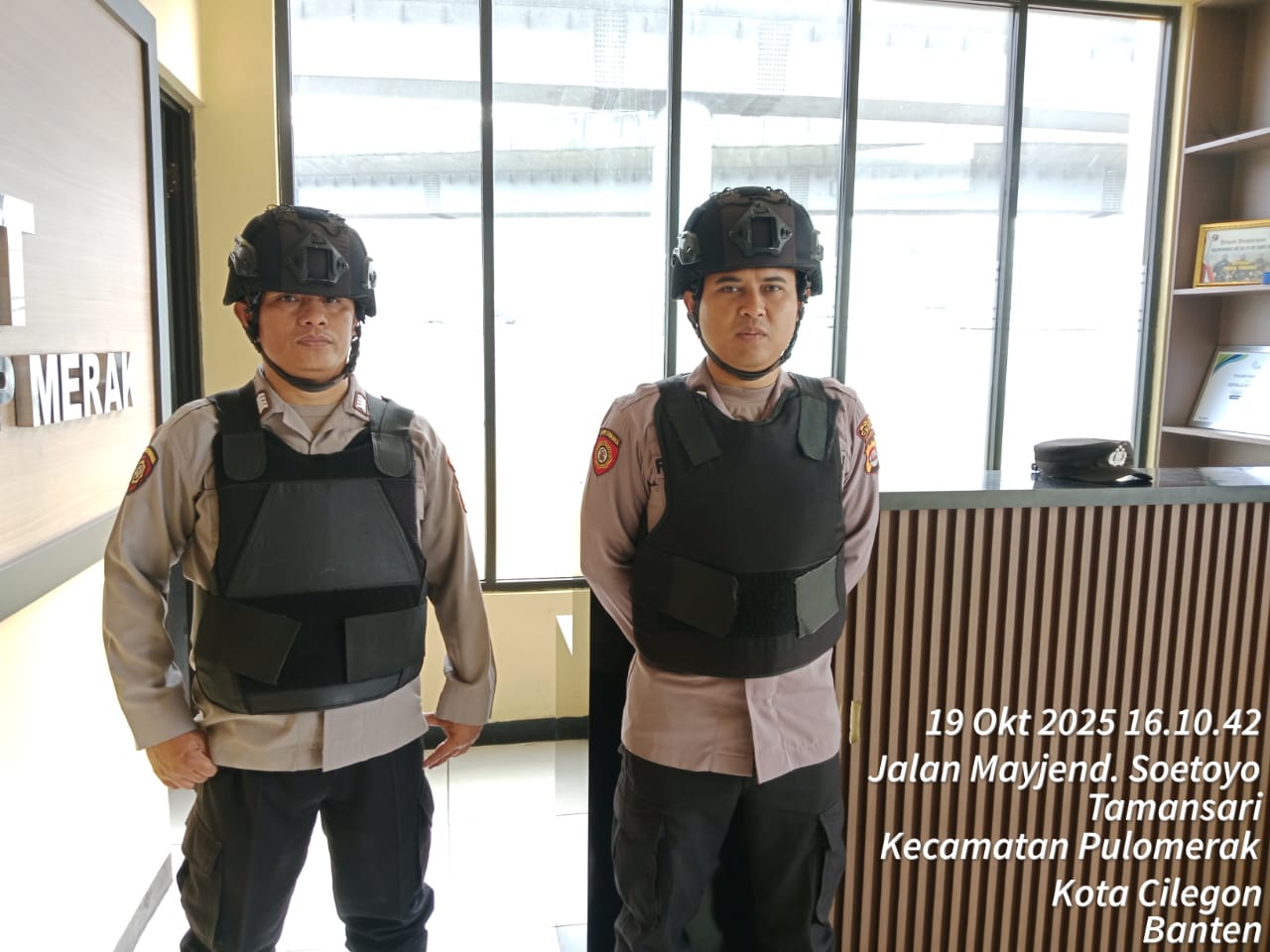 Cilegon - Personel piket jaga Polsek Kskp Merak Polres Cilgon Polda Banten melaksanakan siaga 1 Polsek pelaksanaan Sispam Mako oleh piket siaga dipimpin oleh Kspk Polsek Kskp Merak Polres Cilegon Polda Banten, Minggu (19/10/2025).