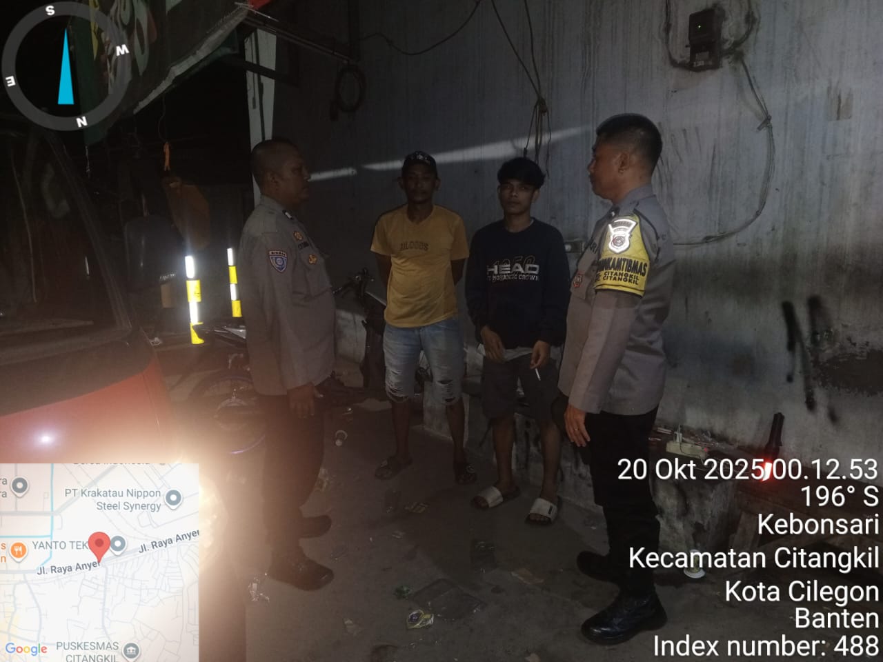 Cilegon - Personil Polsek Ciwandan Ciptakan situasi keamanan dan ketertiban di masyarakat (Kamtibmas) yang aman kondusif Dengan Melaksanakan kegiatan patroli malam guna mencegah gangguan kamtibmas dan kejahatan jalanan, Senin (20/10/2025).