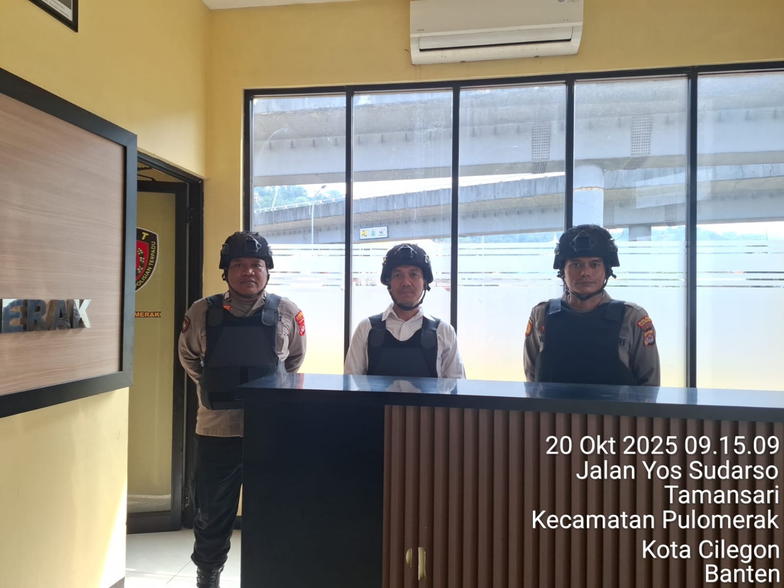 Cilegon - Personel piket jaga Polsek Kskp Merak Polres Cilgon Polda Banten melaksanakan siaga 1 Polsek pelaksanaan Sispam Mako oleh piket siaga dipimpin oleh Kspk Polsek Kskp Merak Polres Cilegon Polda Banten, Senin (20/10/2025).