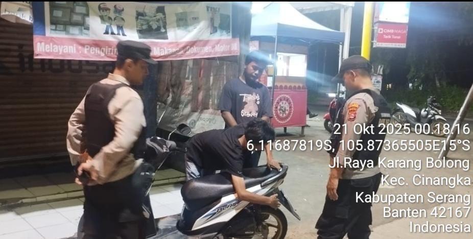 *Cilegon* – Dalam Rangka Pencegahan Kejahatan Jalanan dan Memelihara situasi keamanan dan menjaga serta memberikan rasa aman dan nyaman di masyarakat,Salah satu upaya untuk mewujudkan hal tersebut sebagaimana yang dilakukan oleh Personil Polsek Cinangka Polres Cilegon Polda Banten melaksanakan giat patroli blue light malam hari hingga menjelang pagi, Selasa (21/10/2025).