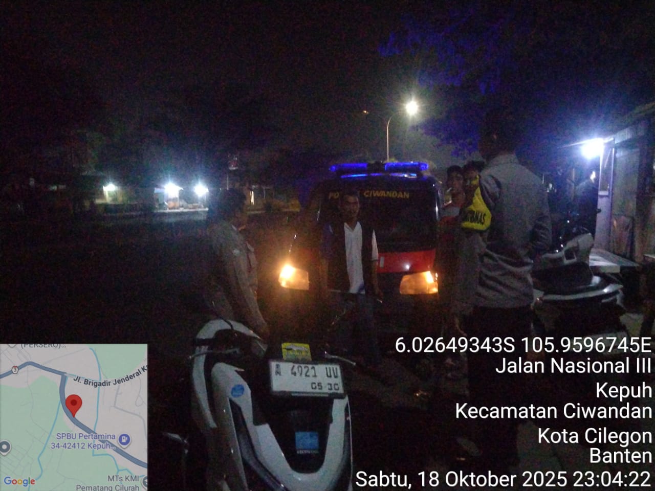 Kapolres Cilegon Polda Banten AKBP Dr. Martua Raja Taripar Laut Silitonga Melalui Kapolsek Ciwandan Polres Cilegon Polda Banten KOMPOL Andi Suherman Mengatakan bahwa setiap malam Personil Polsek Ciwandan Polres Cilegon Polda Banten menggelar patroli dengan menyasar daerah rawan dan Pada Jam Yang Dianggap Rawan, Hal tersebut dilakukan untuk mencegah terjadinya gangguan kamtibmas seperti kejahatan jalanan jambret ataupun curanmor.