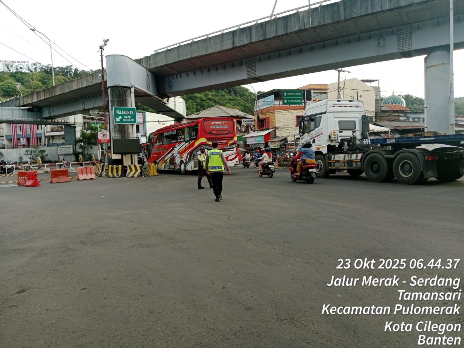 Cilegon - Dalam rangka peningkatan pelayanan prima kepada masyarakat, Kskp Merak Polres Cilegon Polda Banten melaksanakan pengaturan antrian R4 yang akan masuk ke Kapal Ferry di Pelabuhan Merak, Kamis (23/10/2025).