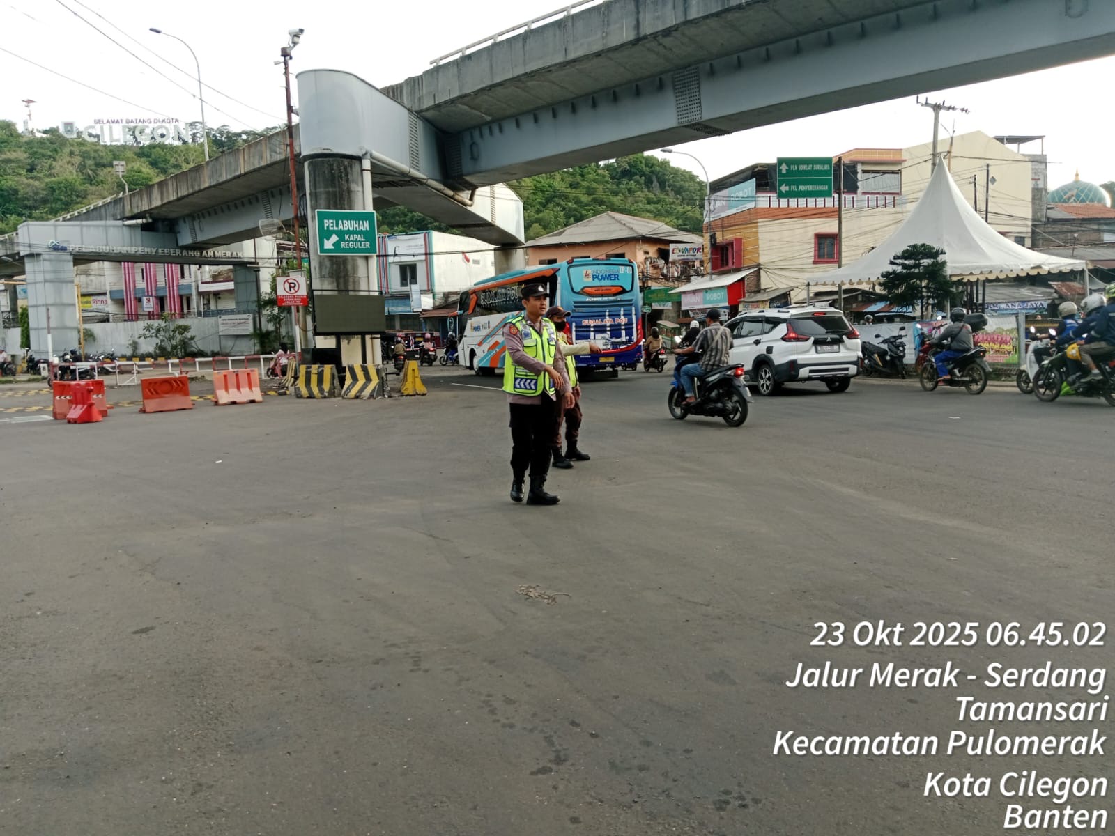 Polsek KSKP Merak Tingkatkan Pelayanan, Atur Antrian Kendaraan Menuju Kapal Ferry di Pelabuhan Merak