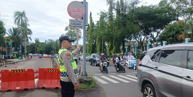 Personel Polsek Purwakarta Lakukan Pengaturan Lalu Lintas di Simpang ADB Cilegon