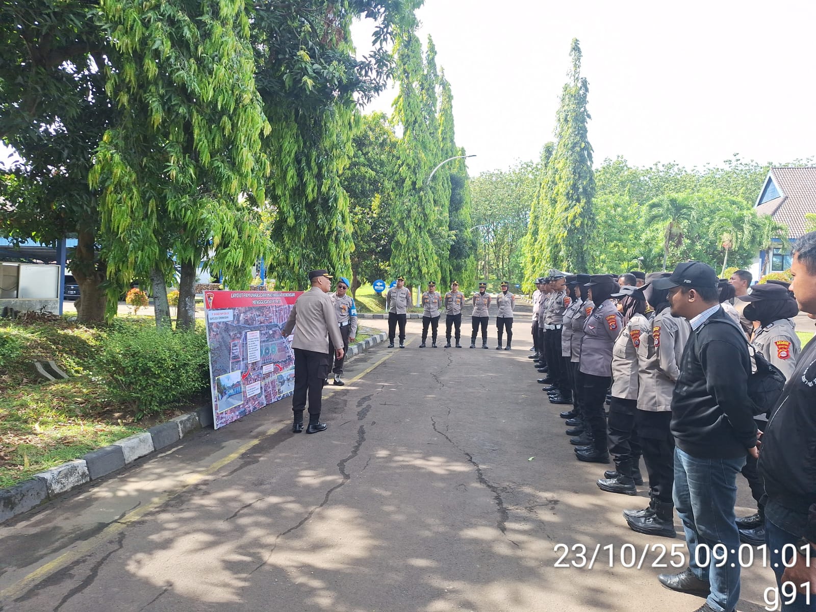 Cilegon – Sebelum melaksanakan pengamanan unjuk rasa,Kapolsek Ciwandan Polres Cilegon Polda Banten KOMPOL Andi Suherman Pimpin Apel Kesiapan Pelaksanaan Pengamanan unjuk rasa dan berikan Arahan Kepada Personil Yang Melaksanakan Pengamanan Unjuk Rasa, Kamis (23/10/2025).