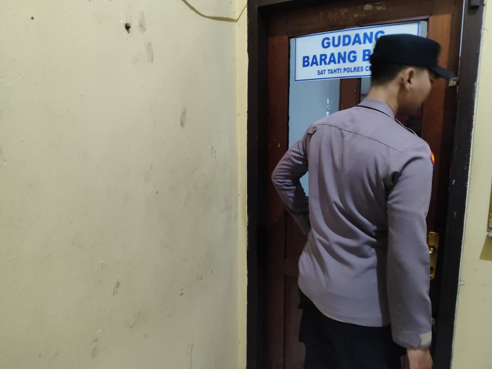 Anggota Piket Tahti Polres Cilegon Harus Melakukan Kegiatan Rutin Pengecekan Kelengkapan dan Barang Bukti Di Gudang Barang Bukti.