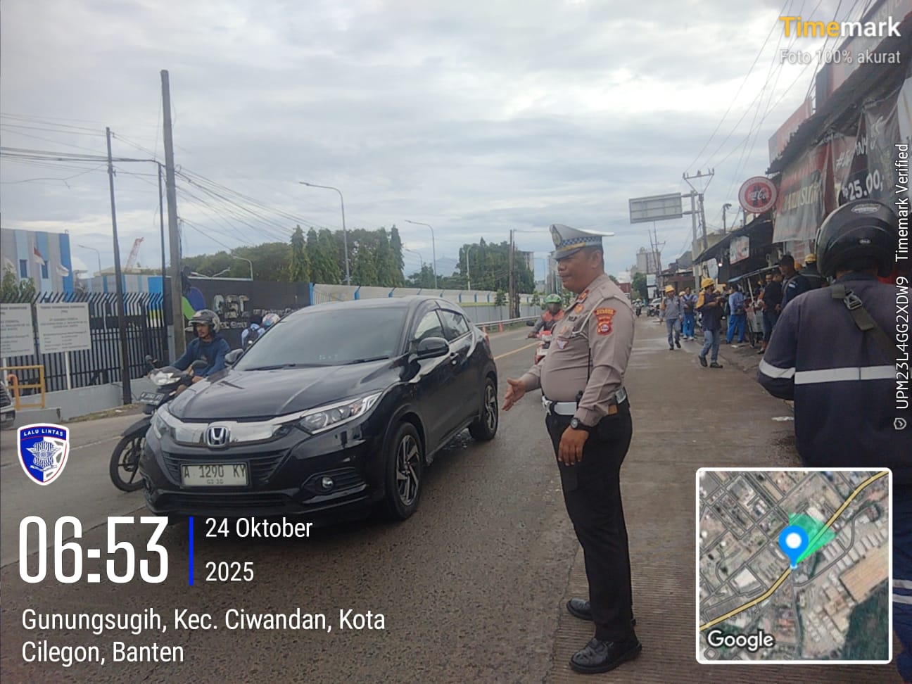 Cilegon - Tingginya mobilitas masyarakat pada jam-jam sibuk, tingkat kerawanan baik itu kemacetan ataupun kecelakaan pasti ada potensi, sehingga untuk mengantisipasi hal tersebut Personil Polsek Ciwandan Polres Cilegon Polda Banten Bhabinkamtibmas melaksanakan Strong Point pada sejumlah lokasi, Kamis (23/10/2025).