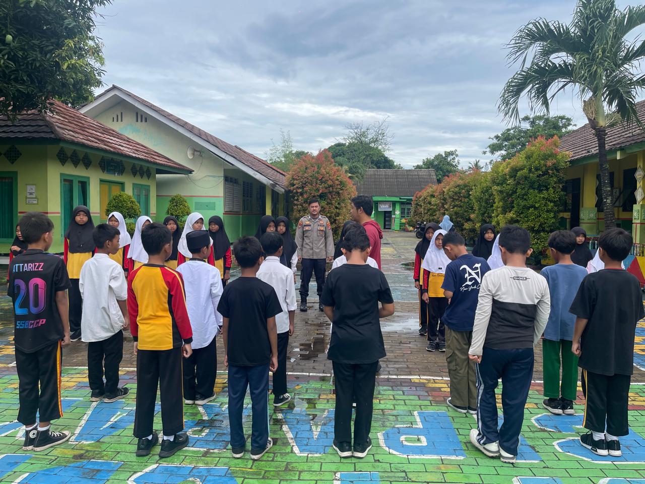 Dalam sambutannya, Bhabinkamtibmas menyampaikan bahwa kegiatan ini merupakan wujud nyata kepedulian Polri terhadap dunia pendidikan serta pembinaan generasi muda agar tumbuh menjadi pelajar yang disiplin, bertanggung jawab, dan cinta tanah air.