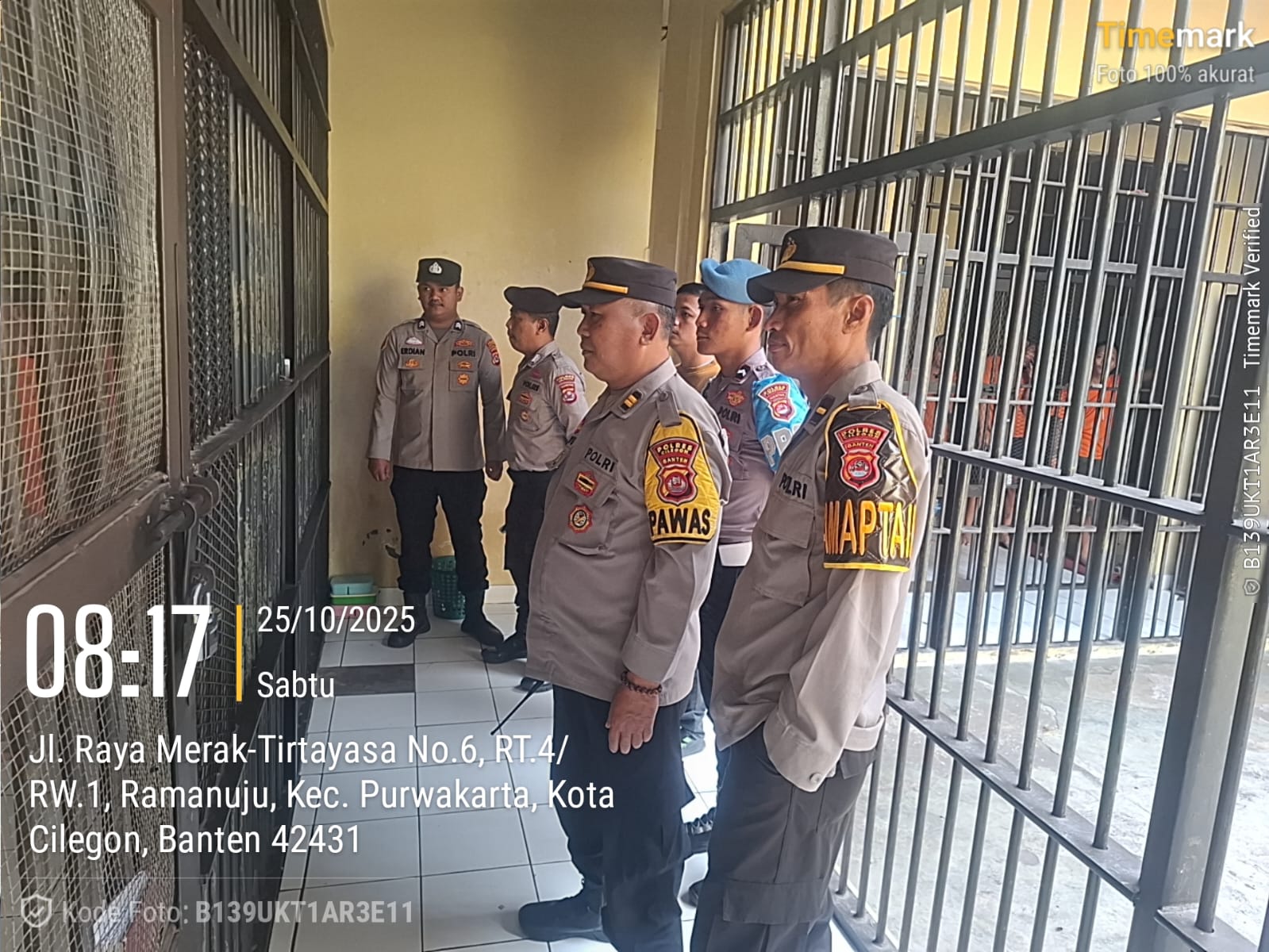 Cilegon,Personel piket Satreskrim Polres Cilegon Polda Banten beserta piket fungsi lainya melakukan pengecekan jumlah narapidana dan ruang di setiap kamar rutan di polres cilegon. Kegiatan ini bertujuan agar terus memonitor keadaan para narapidana di rutan polres cilegon dan menghindari hal-hal yang tidak diinginkan serta mengecek kekuatan setiap ruangan di tahun 2025. Sabtu (25/10/2025).