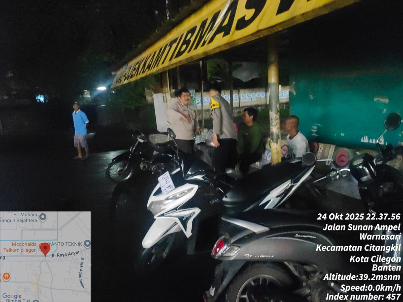 Cilegon - Dalam upaya mengantisipasi aktivitas geng motor dan tindak pidana kriminal, Polsek Ciwandan Polres Cilegon Polda Banten mengadakan kegiatan patroli malam yang meliputi beberapa rute penting di daerah hukum Polsek Ciwandan Polres Cilegon Polda Banten, Sabtu (25/10/2025).
