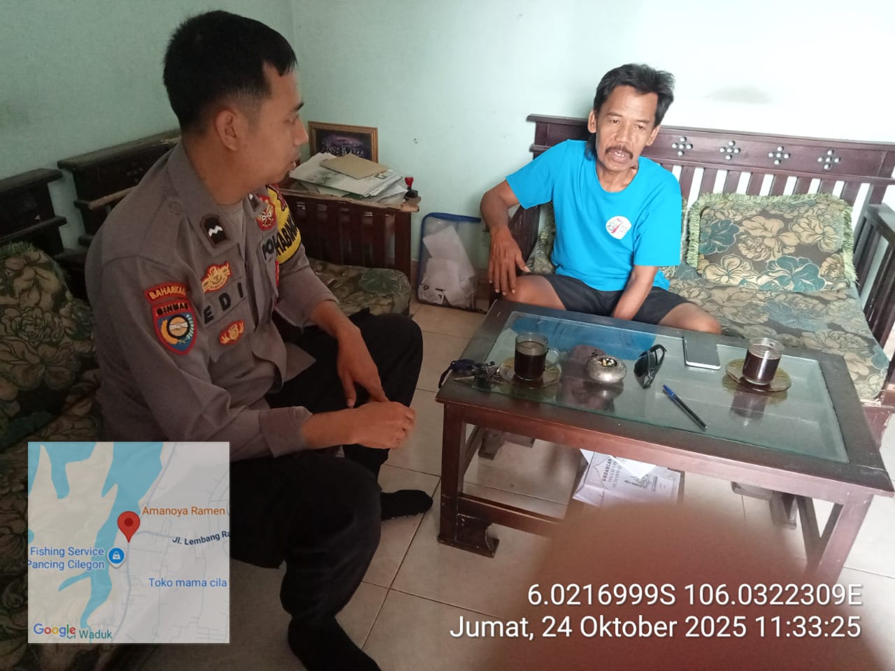 Cilegon - Bhabinkamtibmas Polsek Ciwandan Polres Cilegon Polda Banten  Melaksanakan kegiatan Dialogis/Sambang Door to Door Sistem (DDS) Di daerah binaannya serta memberikan Pesan-pesan Kamtibmas Guna Menciptakan situasi Harkamtibmas yang Aman dan nyaman, Sabtu (25/10/2025).