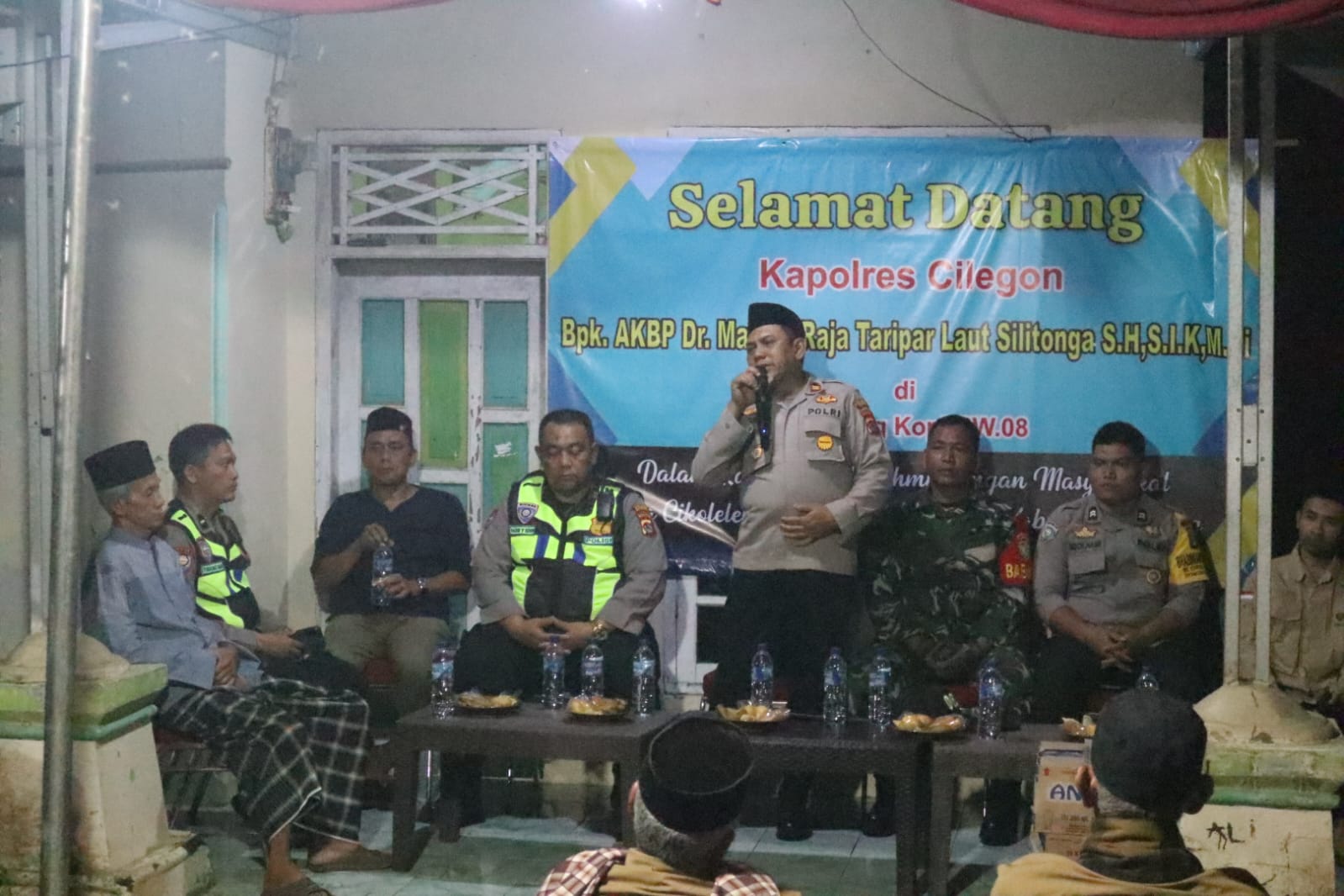 Cilegon – Dalam rangka memperkuat kemitraan antara Polri dan masyarakat dalam menjaga keamanan lingkungan, Kapolres Cilegon Polda Banten AKBP Dr Martua Raja Taripar Laut Silitonga S.H., S.I.K., M.Si melalui Kasat Binmas IPTU Muhyidin, S.H., melaksanakan kunjungan ke Pos Kamling Kampung Kopi RT 001 RW 008, Desa Cikolelet, Kecamatan Cinangka, Kabupaten Serang, Sabtu (25/10/2025) malam.