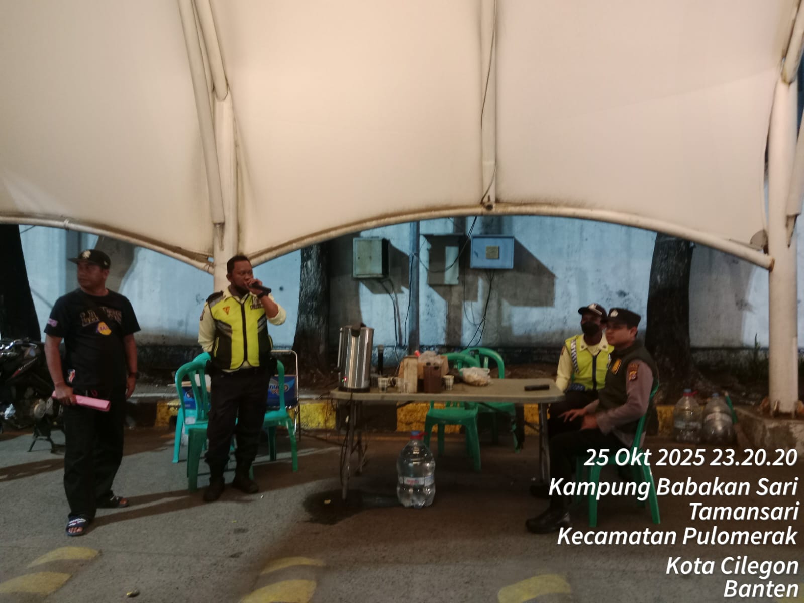 Cilegon - Personel Polsek Kskp Merak Polres Cilegon Polda Banten melaksanakan sambang dan patroli kawasan pelabuhan merak dalam rangka menjaga Harkamtibmas di Kawasan Pelabuhan Merak, Minggu (26/10/2025).
