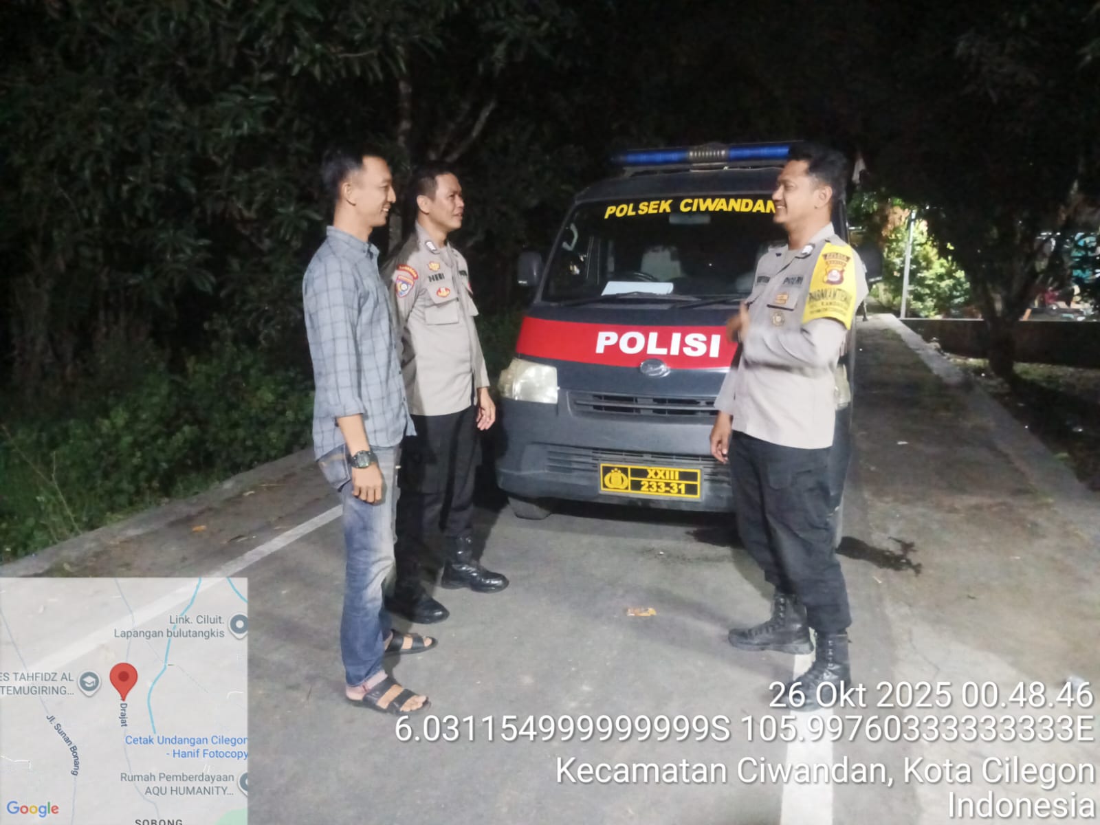 Personil Polsek Ciwandan Patroli Dialogis Malam Secara Humanis