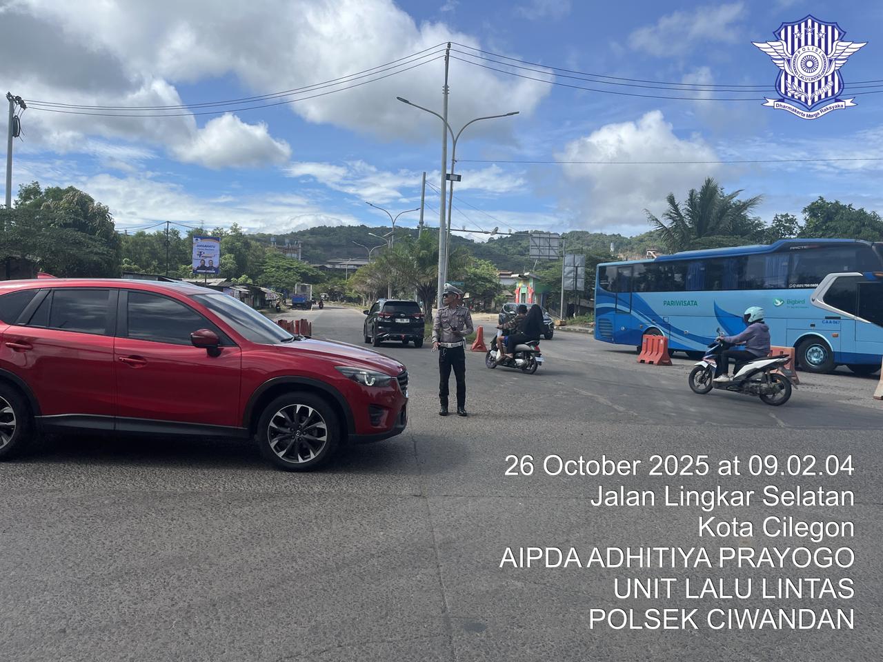 Cilegon - Weekend kali ini Personil Unit Lantas Polsek Ciwandan Polres Cilegon Polda Banten melaksanakan pengaturan lalu lintas di Simpang JLS tepatnya di Pertigaan depan PT. Semen Indonesia Demi Kelancaran Arus Lalu-lintas Wisata, Minggu (26/10/2025).