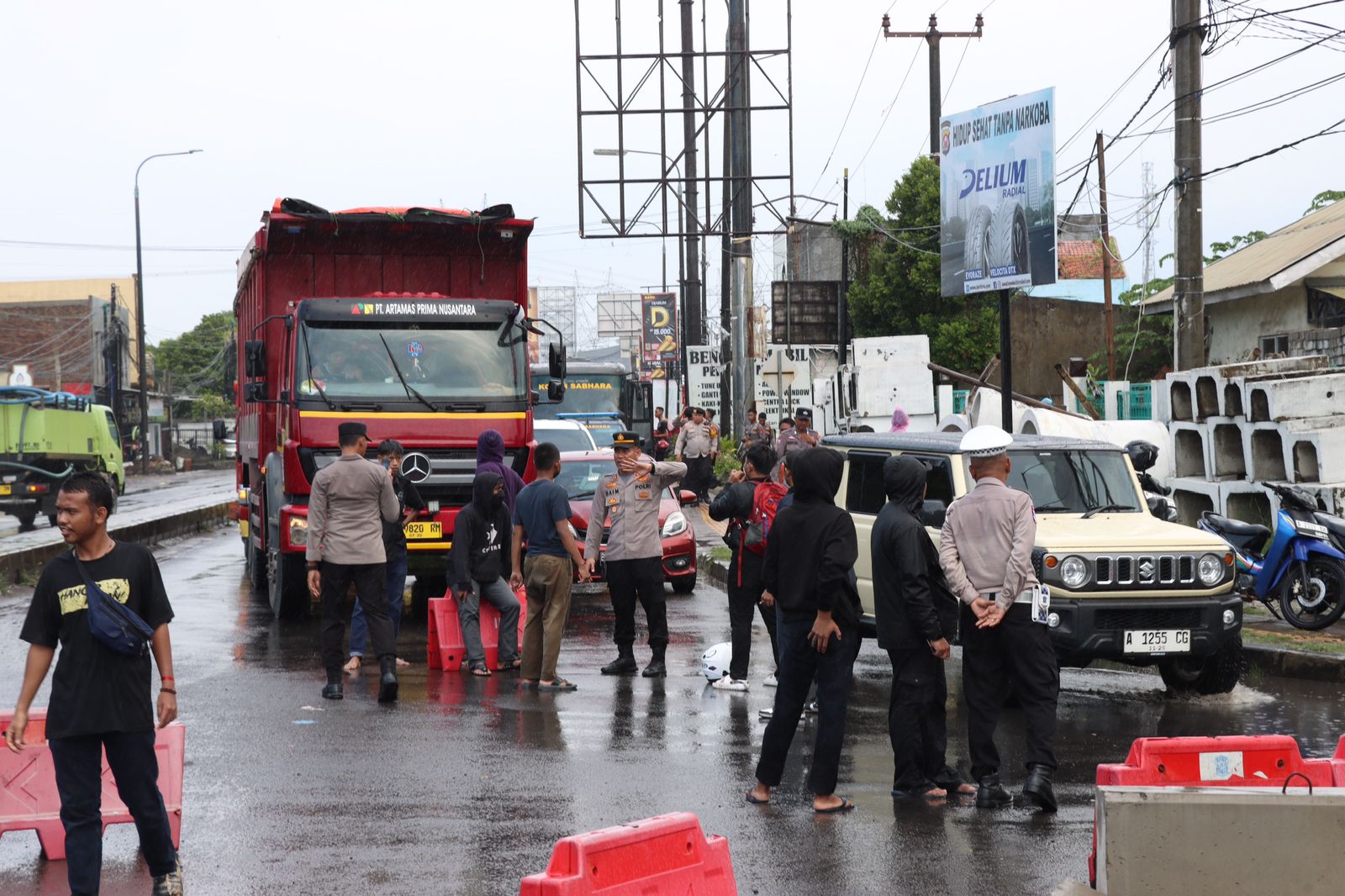 massa sempat memblokade akses jalan di sekitar lokasi aksi. Kasat Intel Polres Cilegon bersama Kasat Intel Polresta Serang Kota kemudian melakukan penggalangan terhadap massa dan salah satu tokoh aksi, Muksinin, untuk membuka jalan kembali demi menjaga kelancaran arus lalu lintas dan menghindari gangguan yang lebih luas kepada masyarakat.