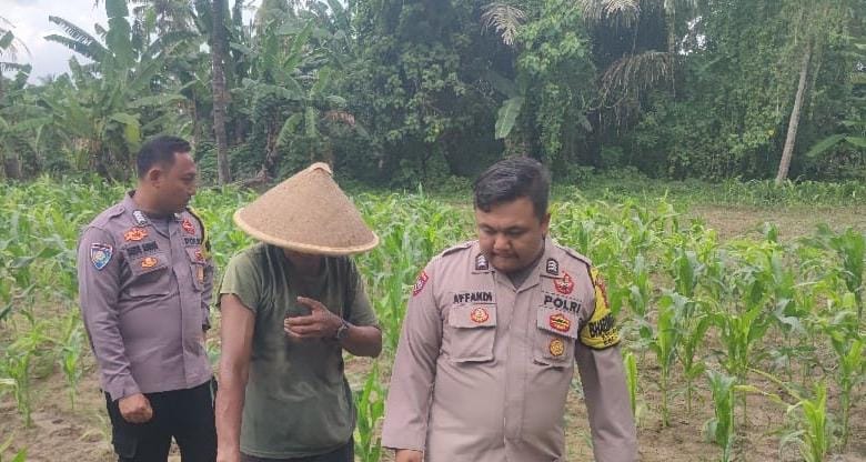 Bhabinkamtibmas cek kebun jagun bersama petani lokal