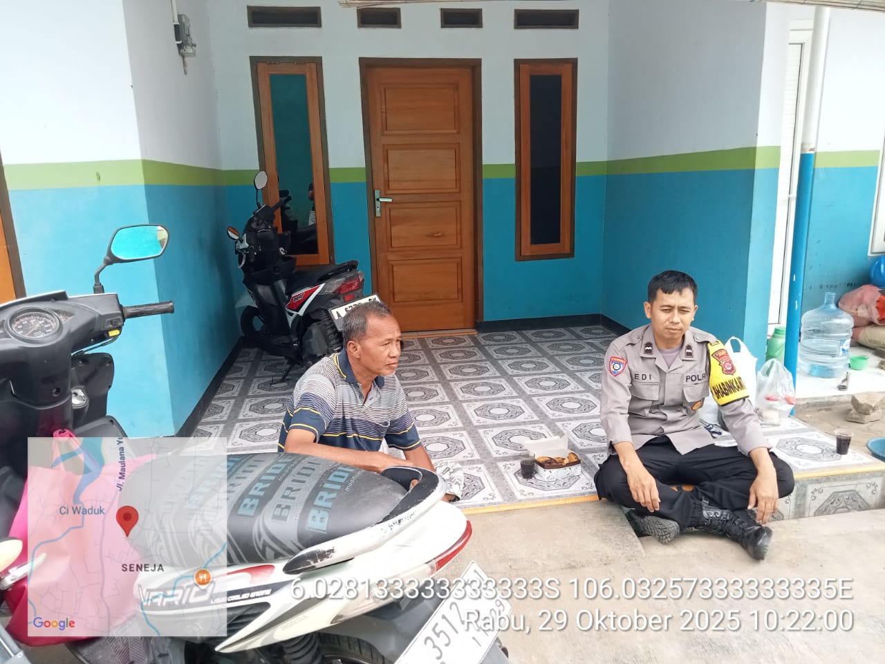 Cilegon - Giat sambang ini merupakan salah satu tugas rutin Bhabinkamtibmas yakni dengan melaksanakan kunjungan kepada masyarakat binaannya untuk menjalin silaturahmi yang lebih erat dan menyampaikan pesan-pesan kamtibmas serta mencari informasi yang berkembang di masyarakat agar tercipta situasi kamtibmas yang aman dan kondusif, Rabu (29/10/2025).