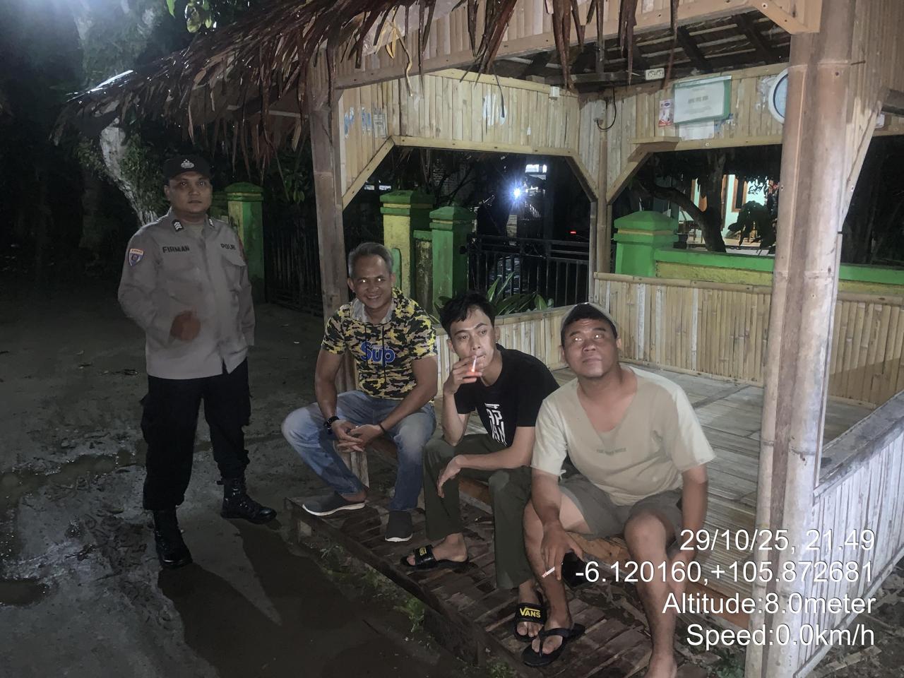 *Polres Cilegon* || Personil Bhabinkamtibmas Polsek Cinangka melaksanakan Program Komandan Wish Kapolda Banten RONDA SATKAMLING menyampaikan komunikasi dengan Petugas Siskamling agar berperan aktif dalam menciptakan Harkamtibmas yang aman dan Kondusif, Kamis (30/10/2025).