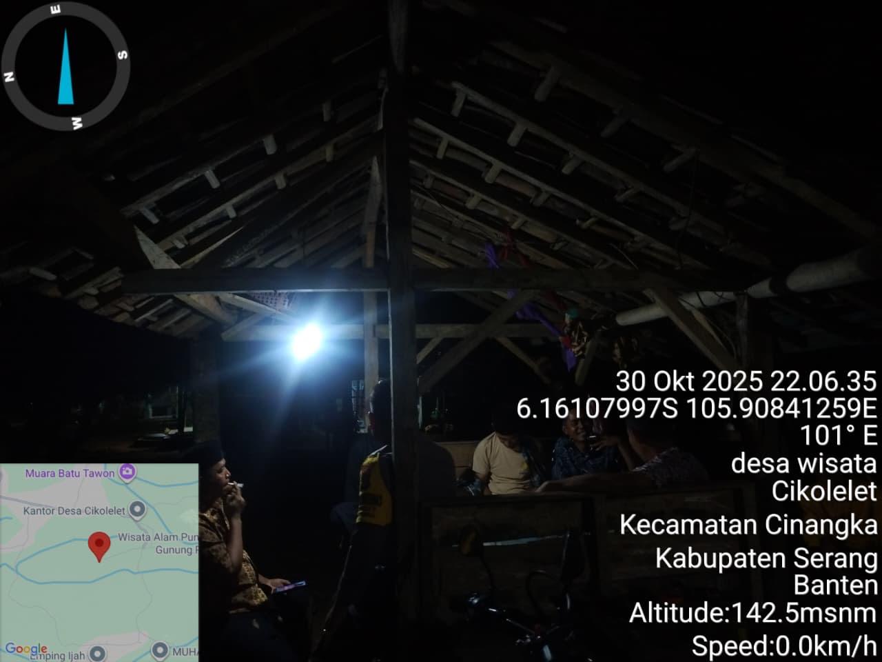*Polres Cilegon* || Personel Bhabinkamtibmas Polsek Cinangka melaksanakan Program Komandan Wish Kapolda Banten RONDA SATKAMLING menyampaikan komunikasi dengan Petugas Siskamling agar berperan aktif dalam menciptakan Harkamtibmas yang aman dan Kondusif, Jumat (31/10/2025).