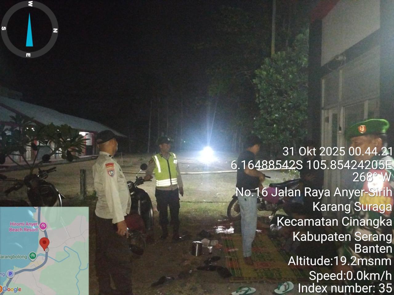 *Cilegon* – Dalam Rangka Pencegahan Kejahatan Jalanan dan Memelihara situasi keamanan dan menjaga serta memberikan rasa aman dan nyaman di masyarakat,Salah satu upaya untuk mewujudkan hal tersebut sebagaimana yang dilakukan oleh Personil Polsek Cinangka Polres Cilegon Polda Banten melaksanakan giat patroli blue light malam hari hingga menjelang pagi, Jumat (31/10/2025).
