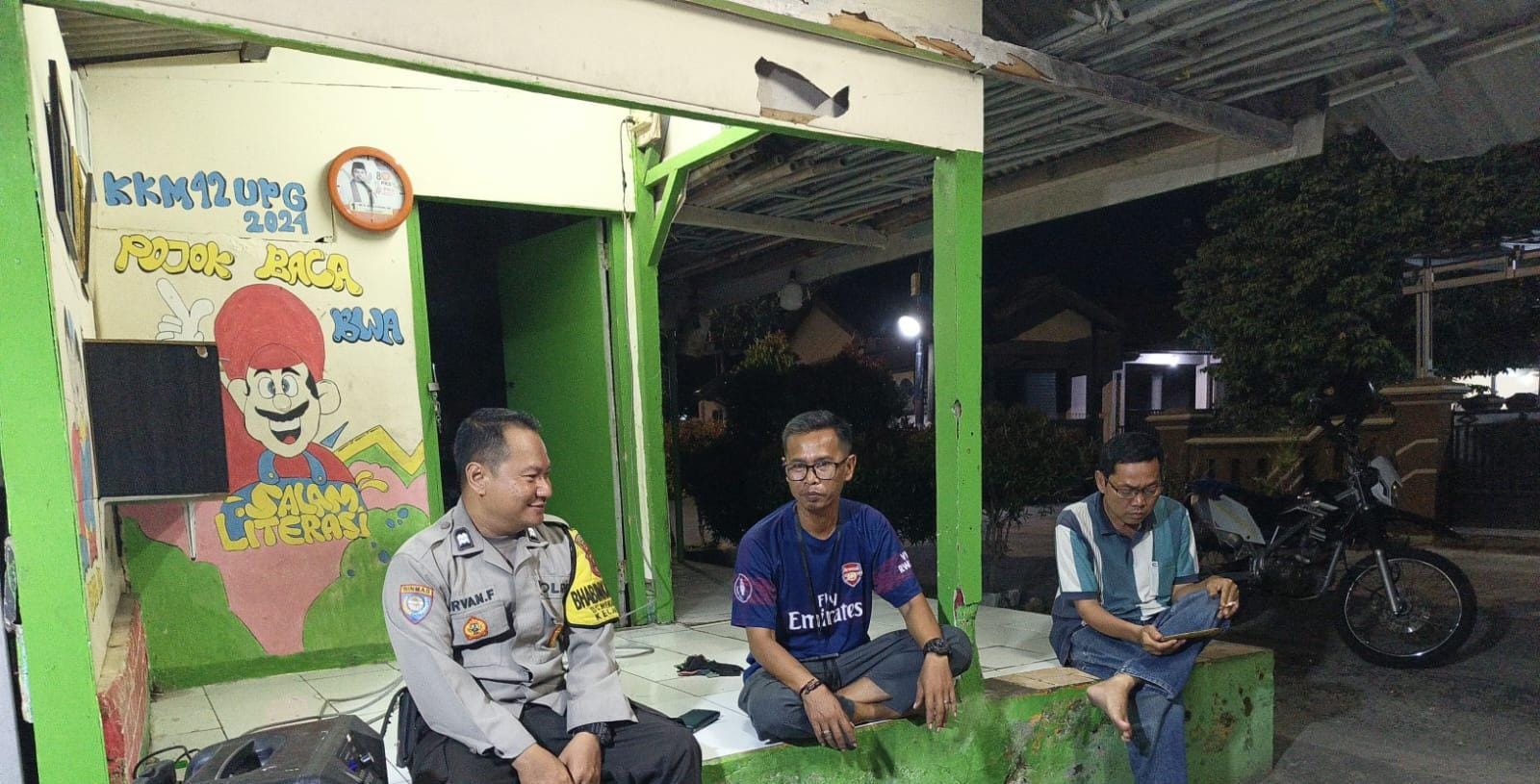 Personel Bhabinkamtibmas Polsek Anyar Polres Cilegon Polda Banten Aiptu Irvan melaksanakan sambang Ronda Siskamling Dalam rangka menjaga Harkamtibmas dan Sebagai bentuk mendukung Program Quick Wins Presisi Polri, Sabtu (01/11).