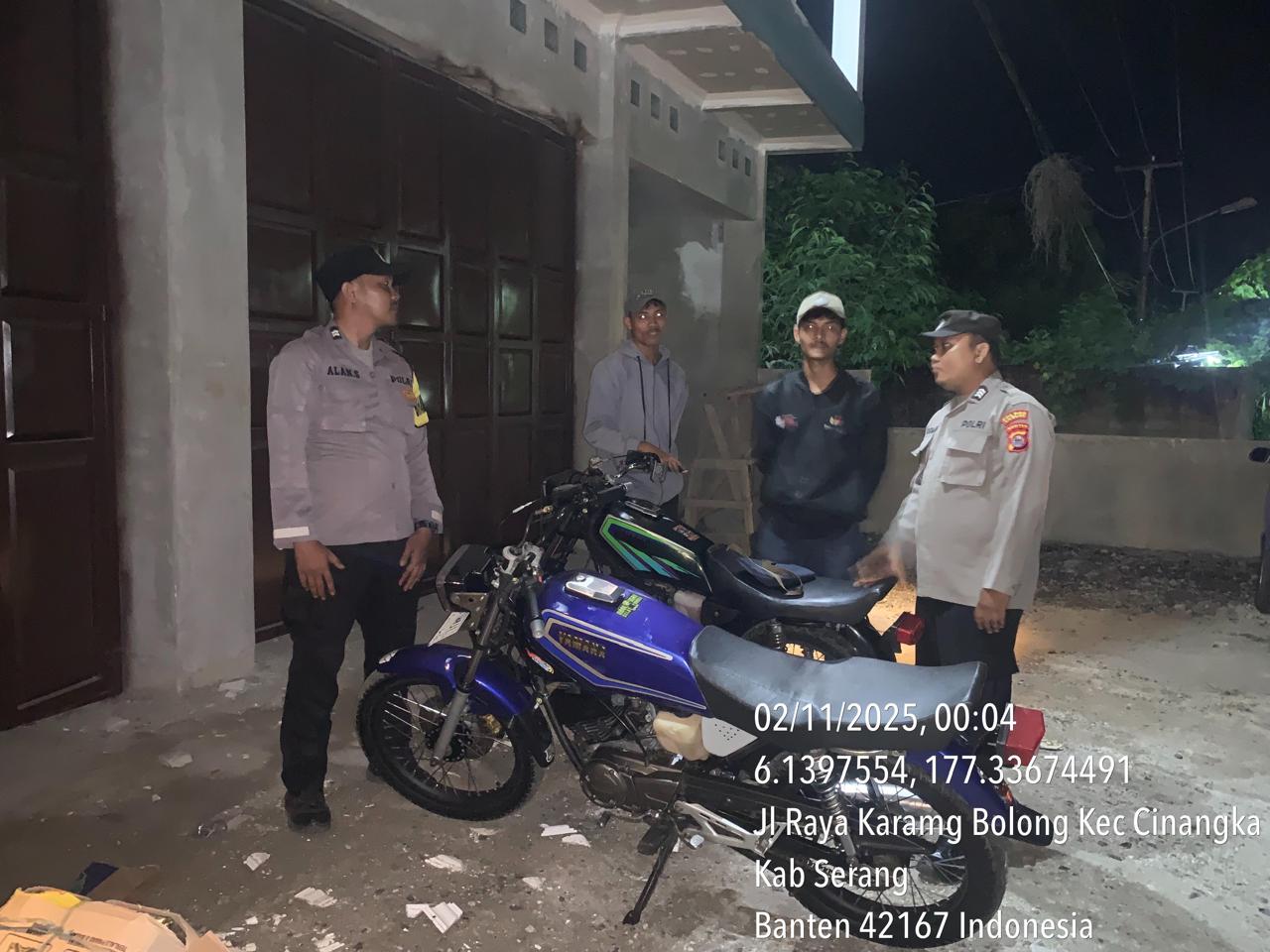 *Cilegon* – Dalam Rangka Pencegahan Kejahatan Jalanan dan Memelihara situasi keamanan dan menjaga serta memberikan rasa aman dan nyaman di masyarakat,Salah satu upaya untuk mewujudkan hal tersebut sebagaimana yang dilakukan oleh Personil Polsek Cinangka Polres Cilegon Polda Banten melaksanakan giat patroli blue light malam hari hingga menjelang pagi, Minggu (02/11/2025).