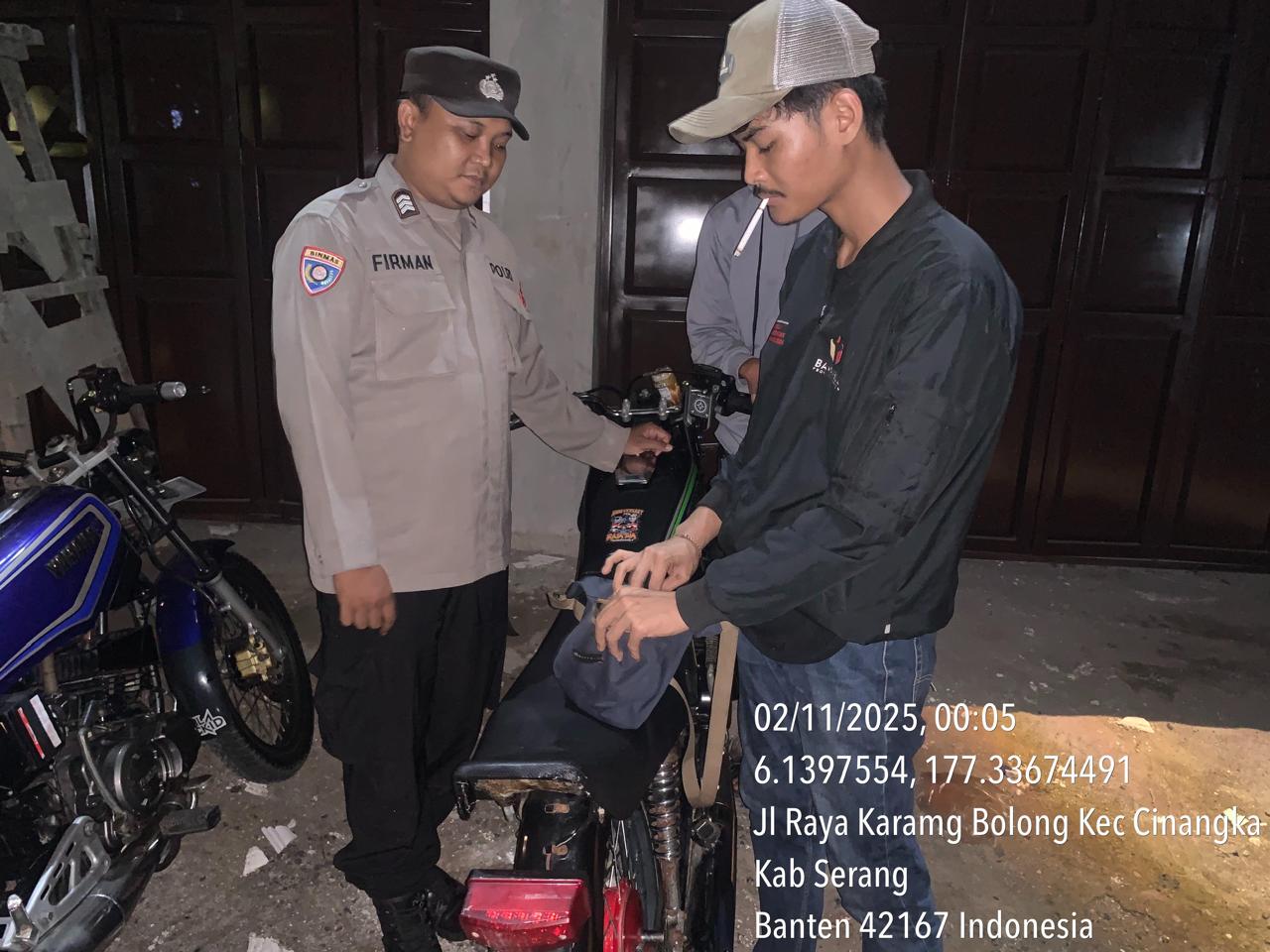 *Cilegon* – Dalam Rangka Pencegahan Kejahatan Jalanan dan Memelihara situasi keamanan dan menjaga serta memberikan rasa aman dan nyaman di masyarakat,Salah satu upaya untuk mewujudkan hal tersebut sebagaimana yang dilakukan oleh Personil Polsek Cinangka Polres Cilegon Polda Banten melaksanakan giat patroli blue light malam hari hingga menjelang pagi, Minggu (02/11/2025).