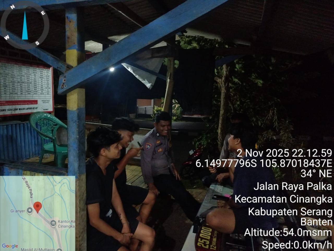 *Polres Cilegon* || Personel Bhabinkamtibmas Polsek Cinangka melaksanakan Program Komandan Wish Kapolda Banten RONDA SATKAMLING menyampaikan komunikasi dengan Petugas Siskamling agar berperan aktif dalam menciptakan Harkamtibmas yang aman dan Kondusif, Senin (03/11/2025).