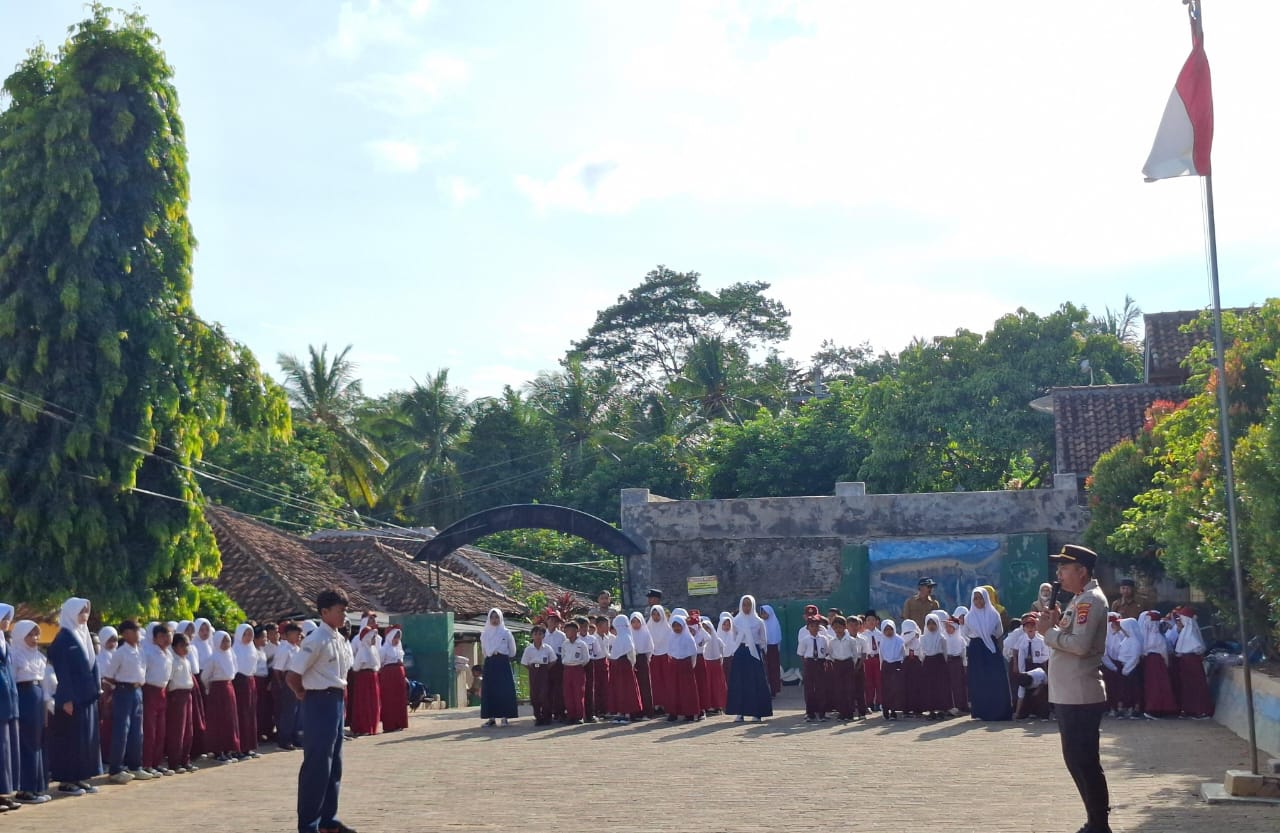 Kapolres Cilegon Polda Banten AKBP Dr. Martua Raja Taripar Laut Silitonga melalui Kapolsek Anyar Polres Cilegon Polda Banten IPTU Iwan Sofiyan menerangkan bahwa telah melakukan kegiatan memimpin Upacara di Sekolah SDN dan SMPN satu Atap Desa Banjarsari Kec. Anyar, serta mengimplementasikan Program Quick Wins Presisi Polri.