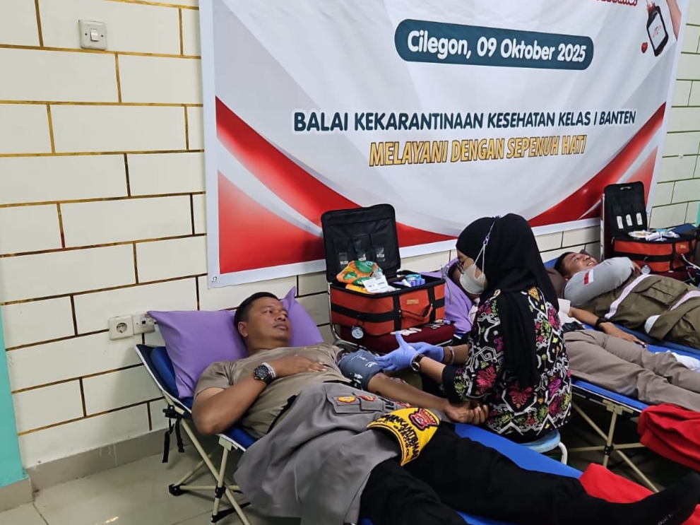 Kali ini  Kapolsek Pulomerak Polres Cilegon beserta bhabinkamtibmas  melaksanakan monitoring kegiatan donor darah di karantina merak, ujarnya