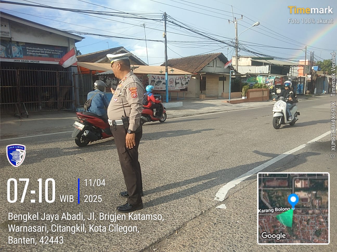 Cilegon – Berikan Pelayanan Pagi Kepada Masyarakat Personil Polsek Ciwandan Polres Cilegon Polda Banten melaksanakan pengaturan di titik kepadatan Arus Lalu-lintas Yang Ada Di daerah Hukum Polsek Ciwandan, Selasa (04/11/2025).