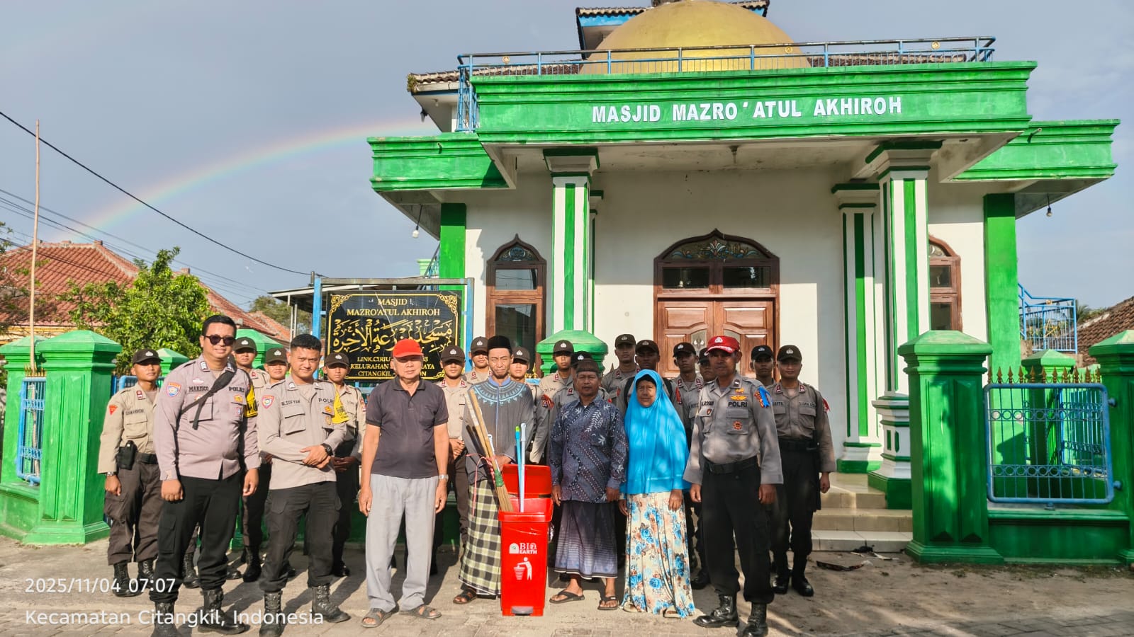 Cilegon - Bhabinkamtibmas Polsek Ciwandan Polres Cilegon Polda Banten melaksanakan kegiatan Bakti Religi dengan membersihkan Masjid Mazro Atul Akhiroh Rt 03/03 Kelurahan Samangraya Kecamatan Citangkil Kota Cilegon, Selasa (04/11/2025).