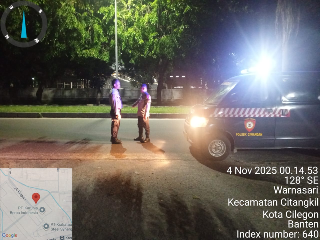 Cilegon - Personil Polsek Ciwandan Polres Cilegon Polda Banten Selalu Melaksanaan Kegiatan KRYD (Kegiatan Rutin Yang Ditingkatkan) Patroli Rutin malam hari di daerah hukum Polsek Ciwandan Guna Persempit Ruang Pelaku Tindak Kejahatan, Selasa (04/11/2025).