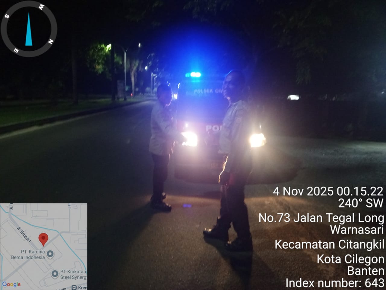 Cilegon - Personil Polsek Ciwandan Polres Cilegon Polda Banten Selalu Melaksanaan Kegiatan KRYD (Kegiatan Rutin Yang Ditingkatkan) Patroli Rutin malam hari di daerah hukum Polsek Ciwandan Guna Persempit Ruang Pelaku Tindak Kejahatan, Selasa (04/11/2025).
