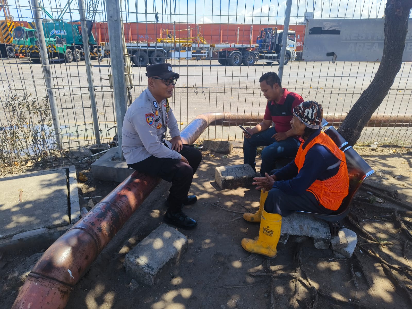 Jalin Silaturahmi, Bhabinkamtibmas Pelabuhan Polsek KP Banten berbincang ke Buruh Pelabuhan