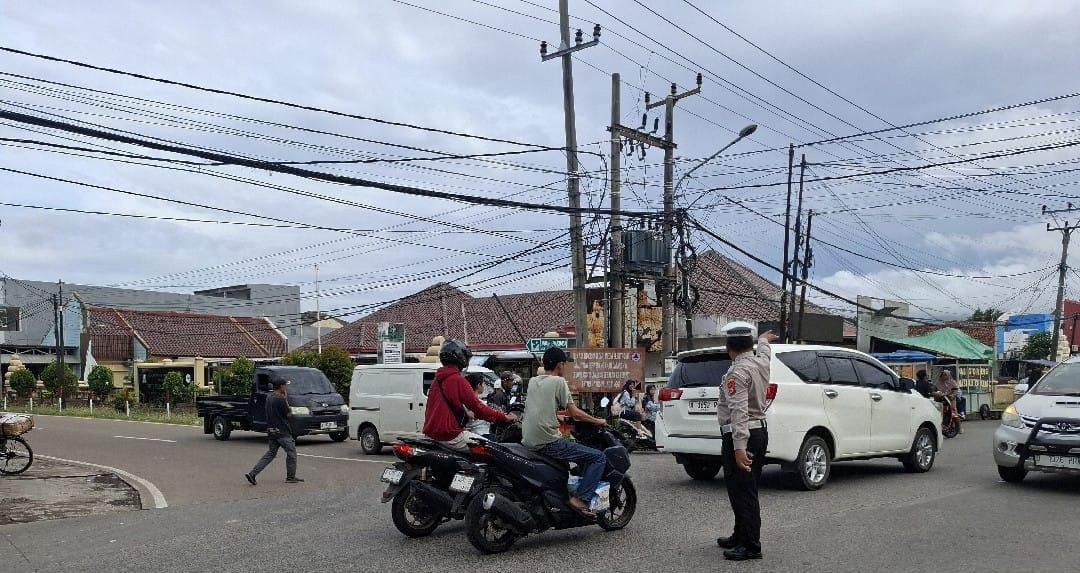 Pengaturan Lalu Lintas Personil Polsek Anyar Jalur Anyar - Cinangka Urai Kendaraan R2 dan R4