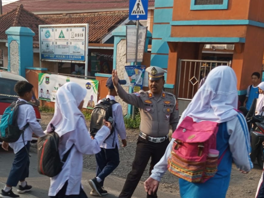 Kanit Lantas Polsek Pulomerak berinovasi bantu atur lalin di depan SMP 3 Cilegon