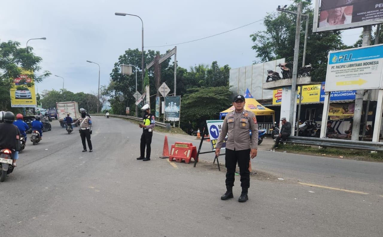 Cegah kemacetan, personil polsek cibeber laksanakan pengaturan lalin