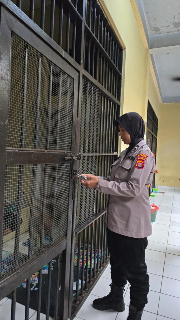 Siwas Polres Cilegon Melaksanakan Kegiatan Rutin Pengecekan Tahanan dan Kontrol Kunci Gembok ruang sel di Polres Cilegon