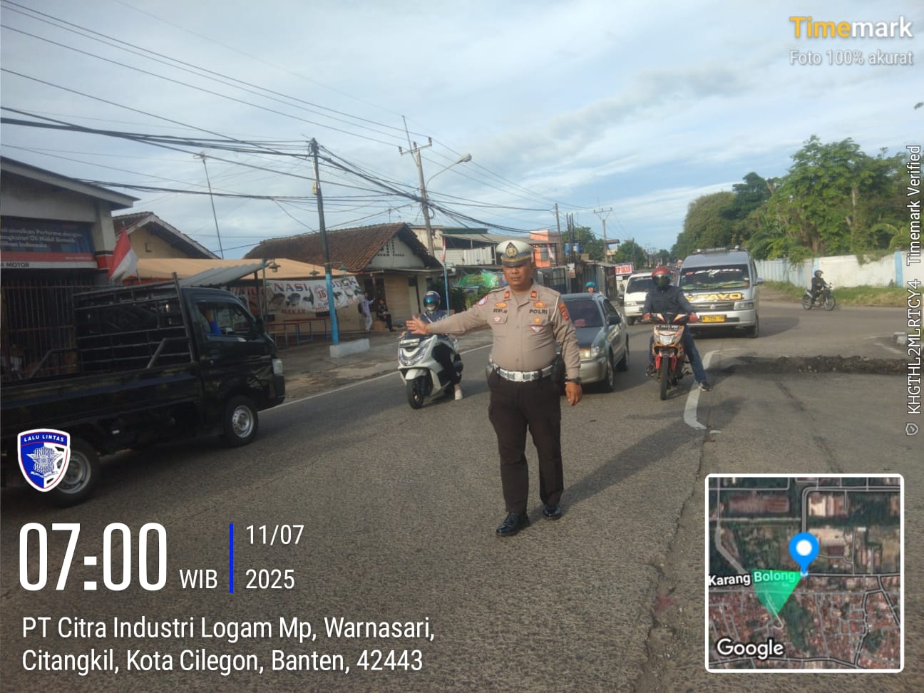 Cilegon – Berikan Pelayanan Pagi Kepada Masyarakat Personil Polsek Ciwandan Polres Cilegon Polda Banten melaksanakan pengaturan di titik kepadatan Arus Lalu-lintas Yang Ada Di daerah Hukum Polsek Ciwandan, Jum’at (07/11/2025).