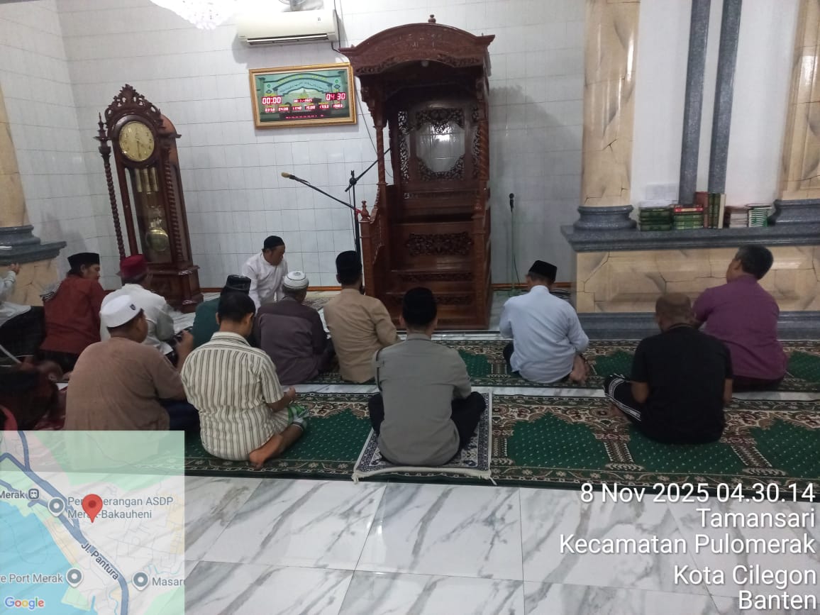 Cilegon – Personil Kskp Merak Polres Cilegon Polda Banten menggelar kegiatan Pembinaan Rohani dengan shalat subuh keliling di Masjid Yang ada Di Daerah hukum Polsek Kp Merak Polres Cilegon Polda Banten, Sabtu (08/11/2025).