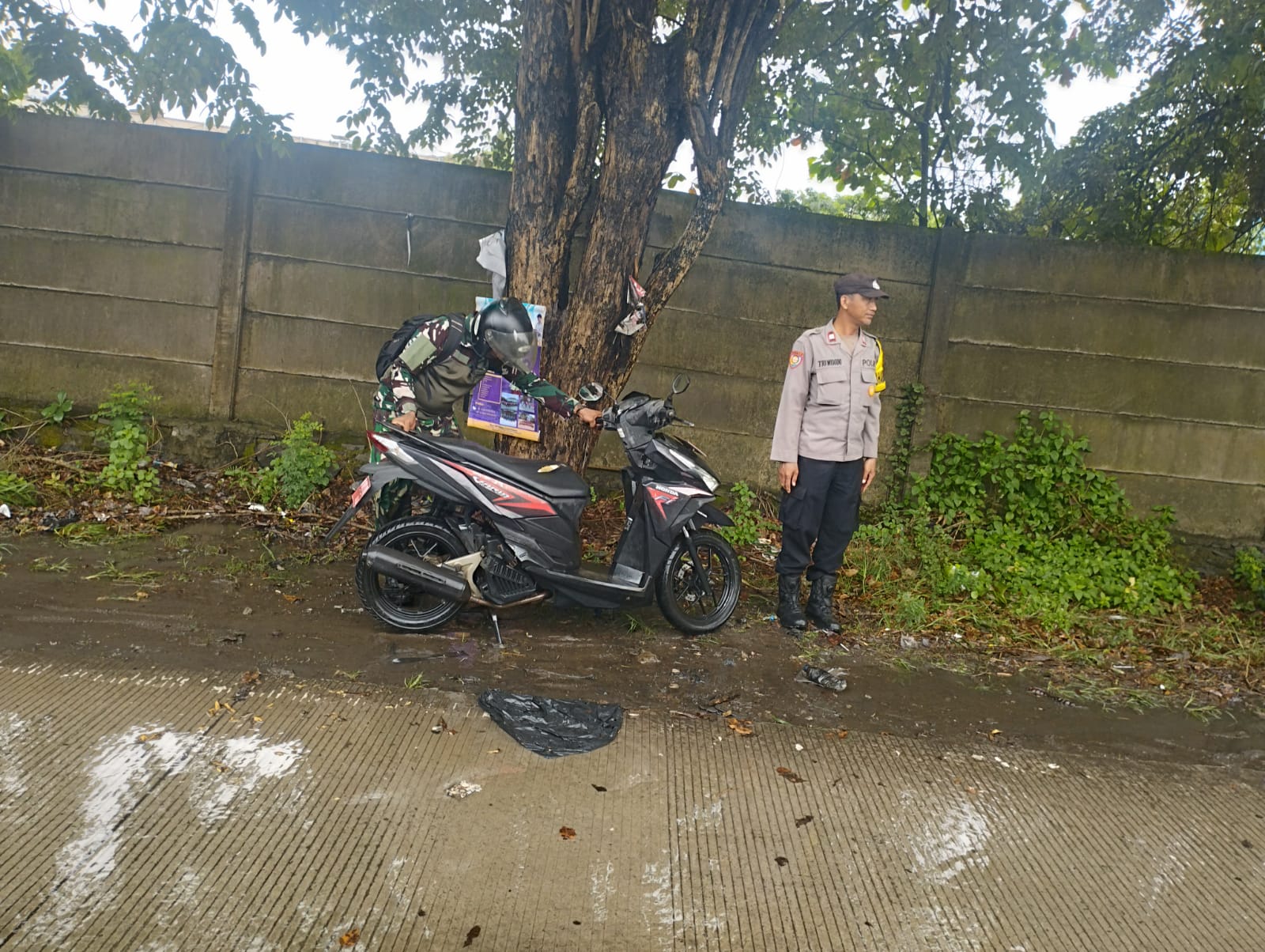 Personil Polsek Ciwandan Gerak Cepat Datangi Titik Genangan Air