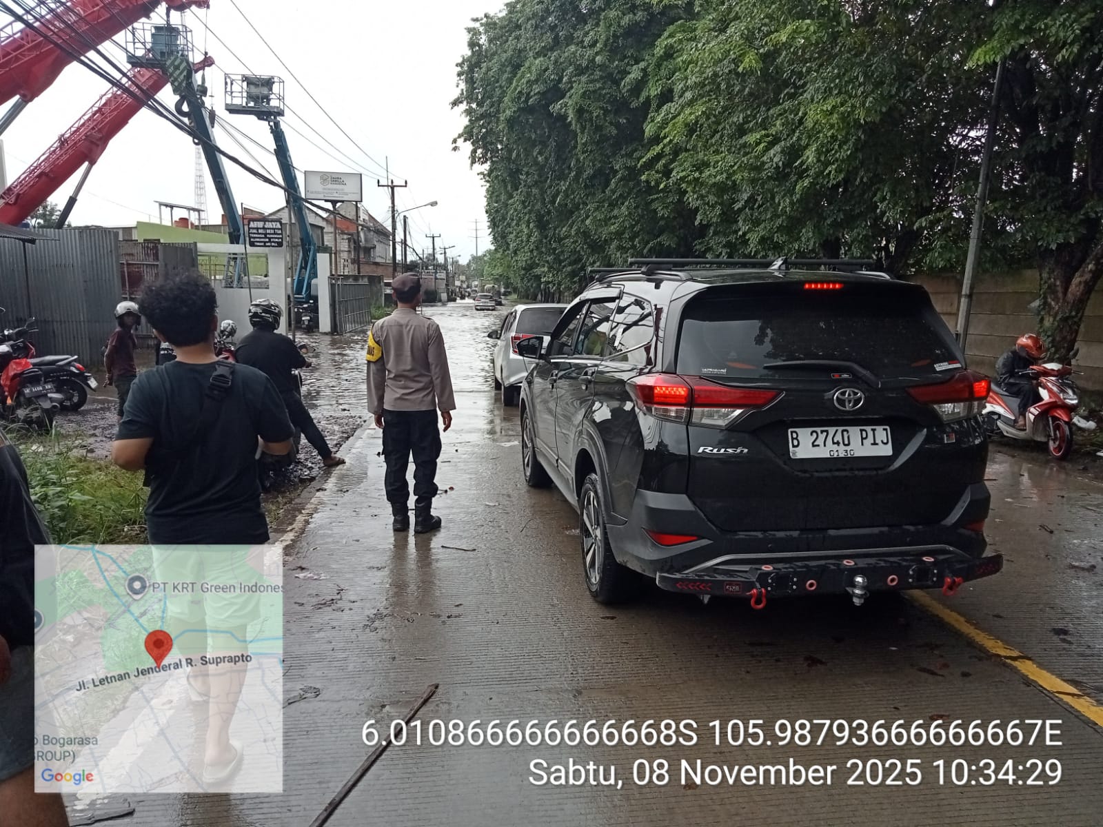 Cilegon - Hujan deras yang mengguyur wilayah Ciwandan menyebabkan genangan air setinggi 40 cm di Jl. Raya Anyer Km 06, Kubang Sari, Ciwandan. Genangan air ini menyebabkan gangguan arus lalu lintas di sepanjang Jl. Raya Anyer-Ciwandan, Sabtu (08/11/2025).