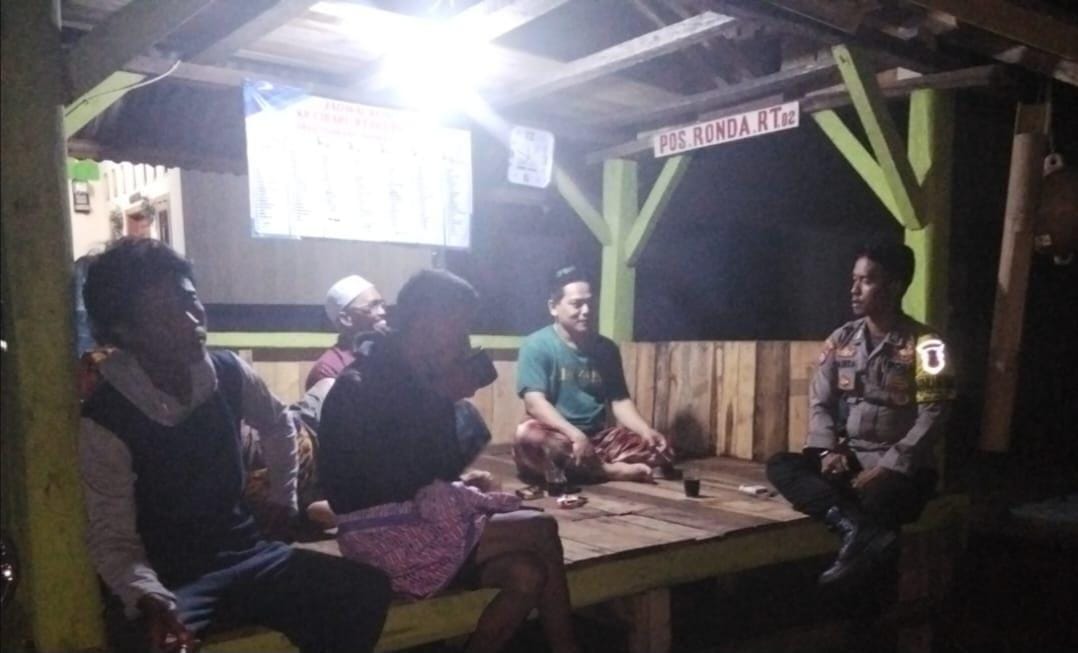 Cilegon - Personel Bhabinkamtibmas Polsek Anyar Polres Cilegon Polda Banten Bripka Pansa melaksanakan sambang Ronda Siskamling Dalam rangka menjaga Harkamtibmas dan Sebagai bentuk mendukung Program Quick Wins Presisi Polri, Minggu (09/10).