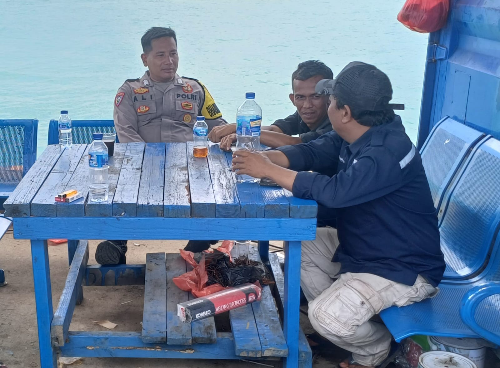 Jalin Silaturahmi, Personil Bhabinkamtibmas Pelabuhan Polsek KP Banten berbincang dengan Buruh Pelabuhan
