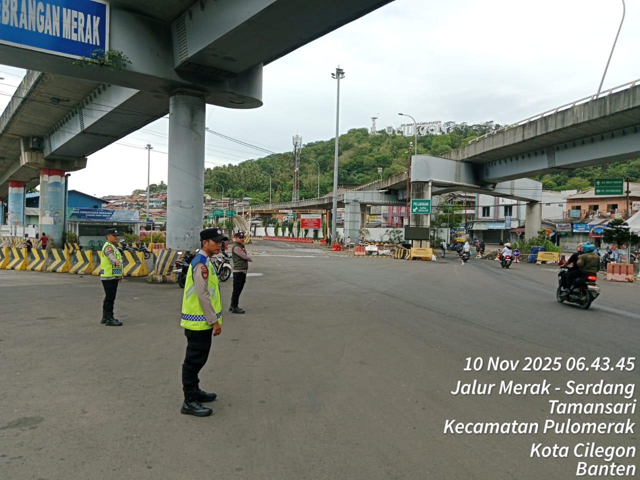 Cilegon - Personil Polsek Kskp Merak Polres Cilegon melaksanakan patroli di kawasan pelabuhan merak memberikan rasa aman dan damai, Senin (10/11/2025)