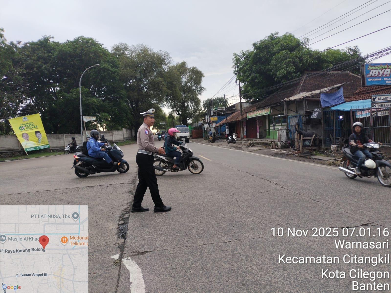 Cilegon - Tingginya mobilitas masyarakat pada jam-jam sibuk, tingkat kerawanan baik itu kemacetan ataupun kecelakaan pasti ada potensi, sehingga untuk mengantisipasi hal tersebut Personil Polsek Ciwandan Polres Cilegon Polda Banten Bhabinkamtibmas melaksanakan Strong Point pada sejumlah lokasi, Kamis (10/11/2025).