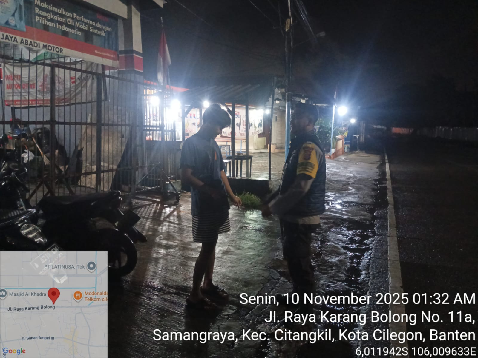 Cilegon - Upaya mengantisipasi aksi kejahatan pada daerah binaan dan memberikan rasa aman dan nyaman kepada warga binaan, Bhabinkamtibmas Polsek Ciwandan Polres Cilegon Polda Banten sambangi warga pada malam hari, Swnin (10/11/2025).